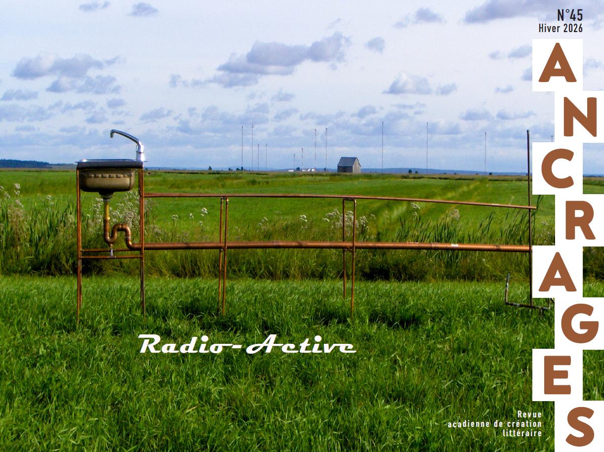 En direct du district Siknikt de Mi’kma’ki, vous écoutez Radio-Active. Vos disc jockeys sont Dominique Boucher et Myriam Thomas, qui vous ont concocté une programmation exceptionnelle sur le thème inspirant des ondes radio. Vous découvrirez des textes d’auteur.rices d’Acadie, du Québec, d’Haïti et de la France. Cette 45e émission de la revue acadienne de création littéraire Ancrages expose aussi certaines des oeuvres formidables de l’artiste néo-brunswickoise très inspirée par la radio, Amanda Dawn Christie. Extrait de sa démarche artistique : « De 2008 à 2017, j’ai réalisé une série de projets artistiques autour des tours de transmission à ondes courtes de Radio-Canada International (RCI), situées dans les marais de Tantramar, près de Sackville (Nouveau-Brunswick). Ce corpus comprend des films, des photographies, des installations, des œuvres sonores, des performances et des interventions paysagères. L’ensemble du travail s’intéresse aux relations entre infrastructures technologiques, paysages ruraux et expériences sensibles, en portant une attention particulière aux phénomènes invisibles, aux récits locaux et aux usages domestiques imprévus de la technologie. »