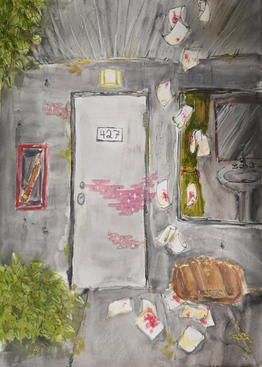 Et alors que le ciel cherche s’il a encore de la pluie en réserve après tout ce qu’il a envoyé, je n’entends pas le tonnerre non plus. Ce que j’entends, c’est la clé dans la serrure. Une clé qui tourne dans la serrure de MA porte. La pluie revient, plus douce. La silhouette qui reste dans l’encadrement ne dévoile aucun de ses traits pour l’instant. Absorbée par la nuit, la lampe de la chambre est trop faible pour l’atteindre. Alors, c’est un éclair qui me laissera une seconde de lumière. Pas besoin de plus. Quand on tue quelqu’un plus de cent fois, on finit par connaitre ses traits par cœur.